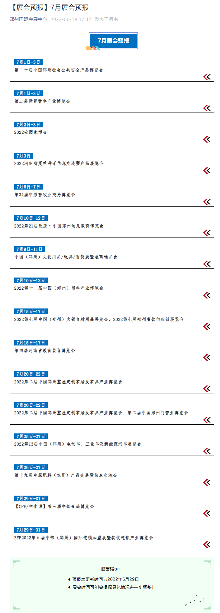 鄭州國(guó)際會(huì)展中心七月份展會(huì)預(yù)報(bào)
